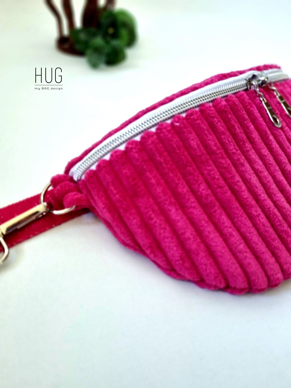 Genäht wurde die Bauchtasche aus robusten Polstercord mit schmalen Rippen. (Lichtecht und abriebfest)